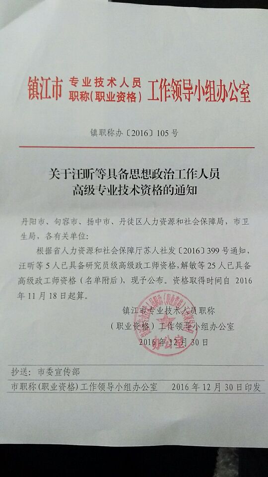 镇职称办[2016]105号