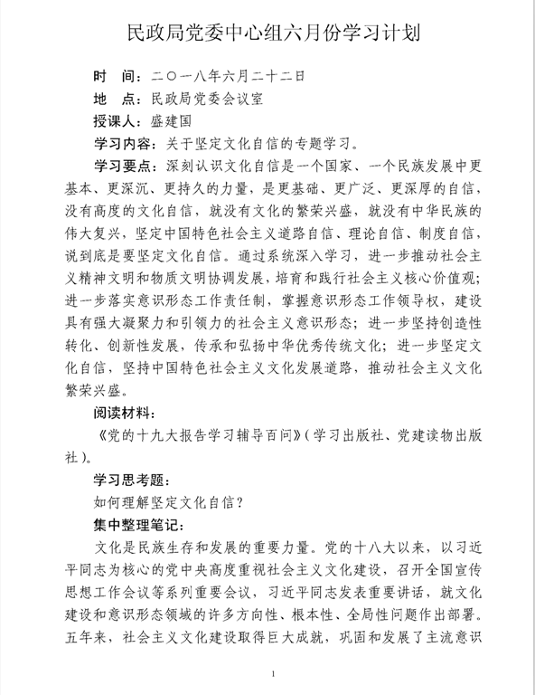 民政局党委中心组六月份学习
