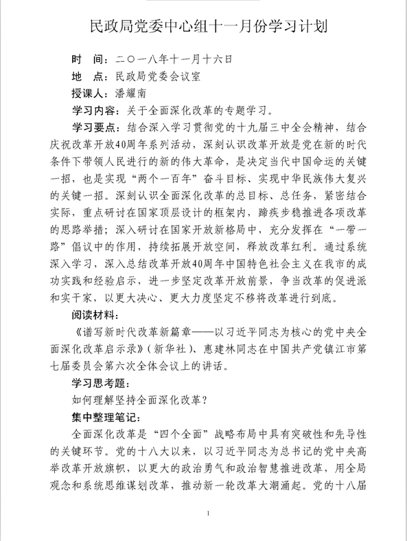 民政局党委中心组十一月份学习