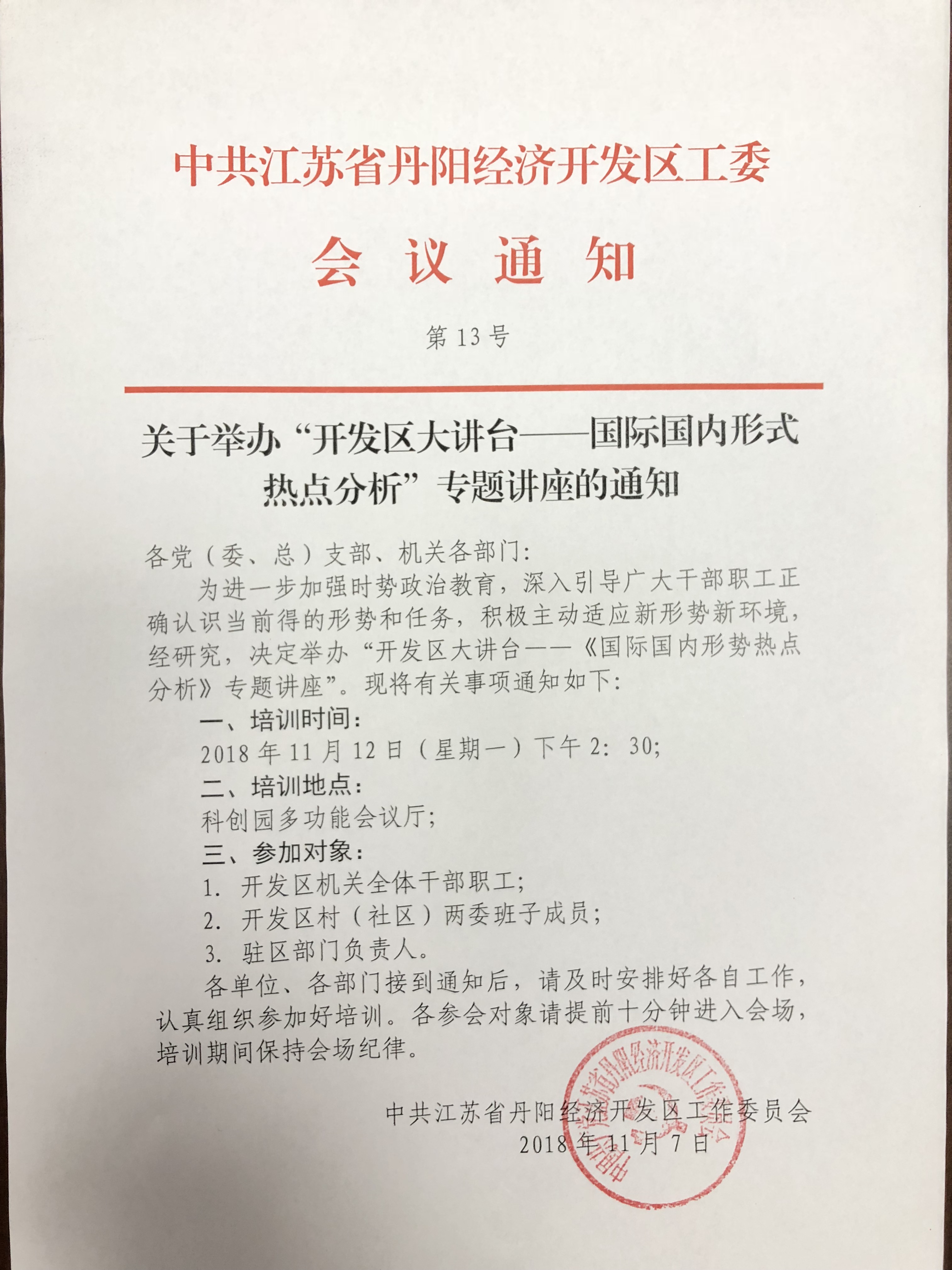 关于举办“开发区大讲台——国际国内形式热点分析”专题讲座的通知
