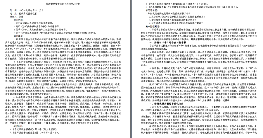 2019年民政局党委中心组七月份集体学习并交流研讨