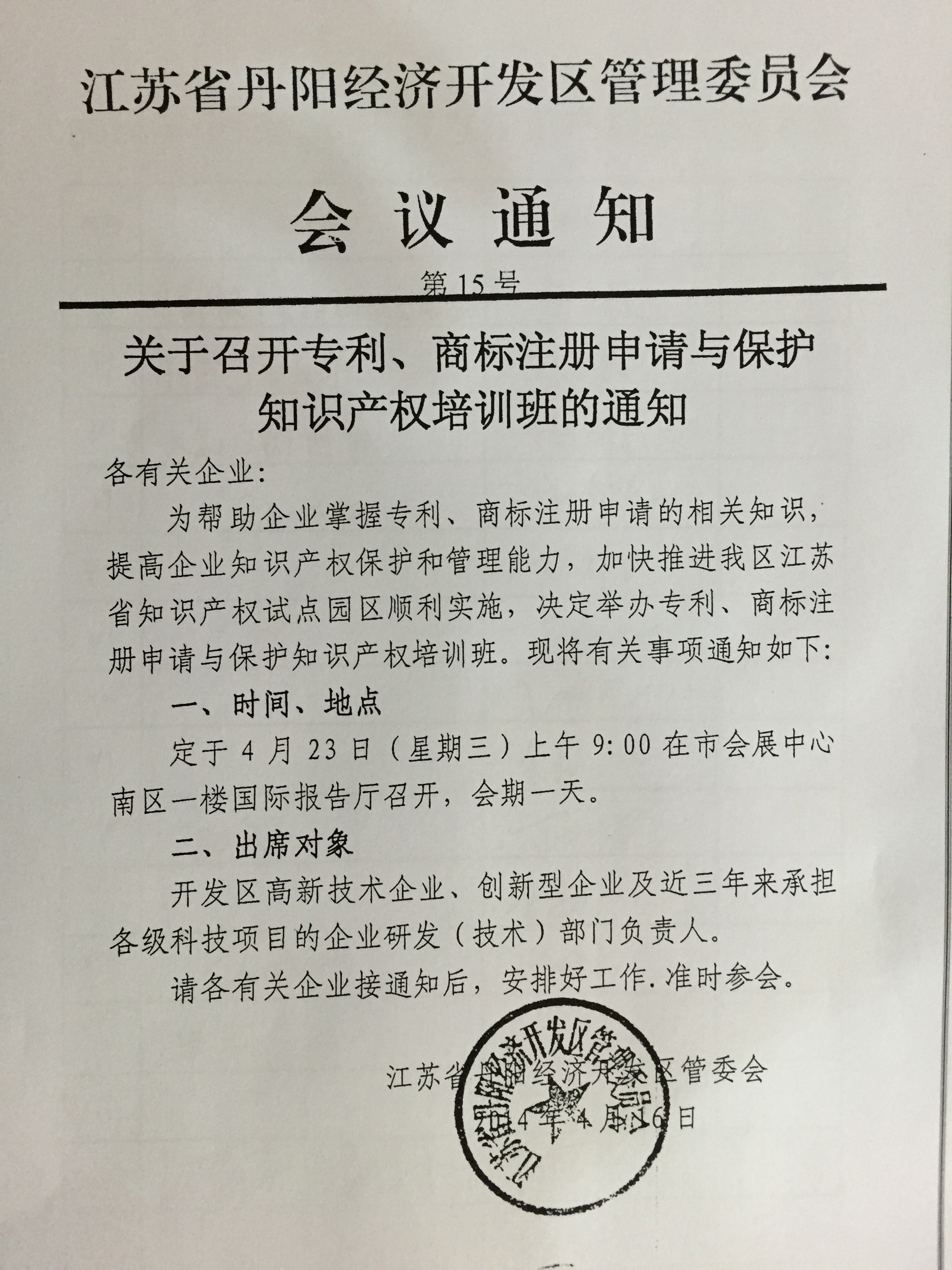 关于在全区开展专利、商标注册申请与保护知识产权培训班的通知