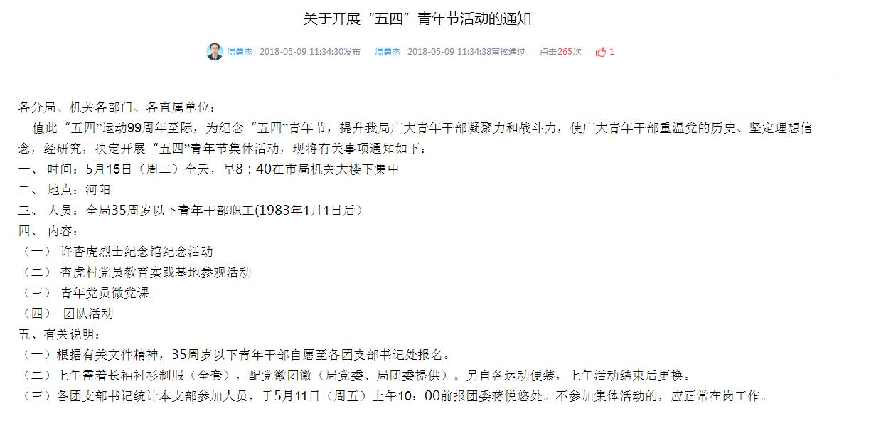 开展“五四”青年节活动