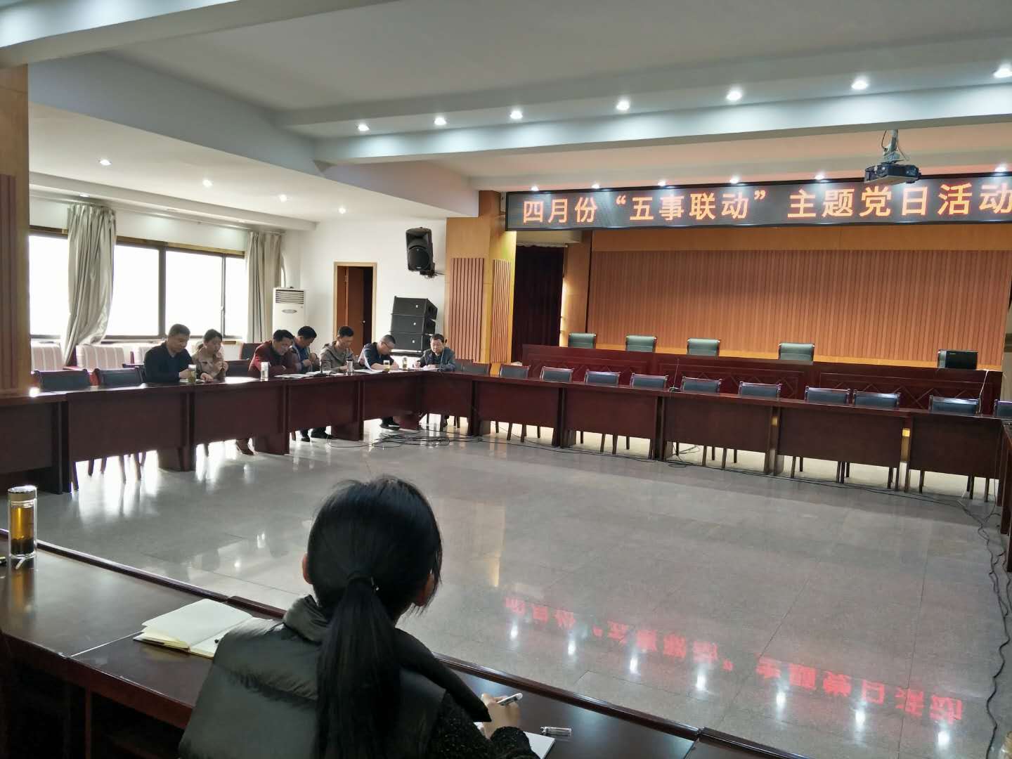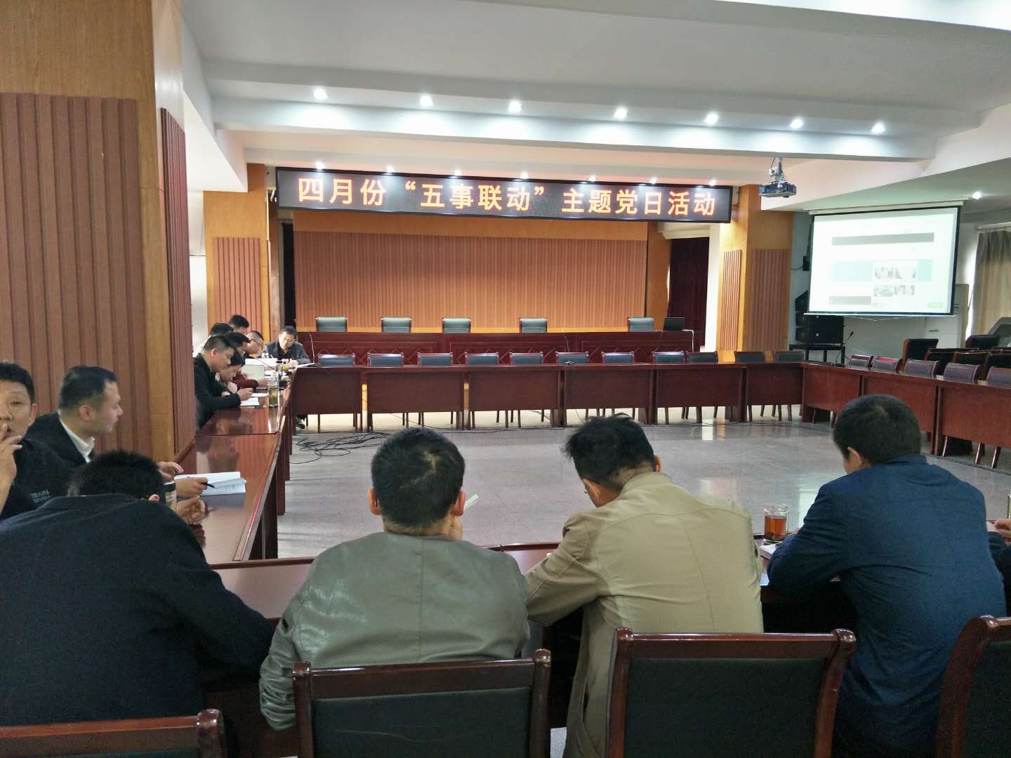 在五楼小剧场开展4月份“五事联动”主题党日活动,本月以“改进作风、提升效能”为专题,重点学习中办《关于解决形式主义突出问题为基层减负的通知》、学习新华网评:《“我将无我”大境界 “不负人民”大作为》、集中观看安全生产教育专题片《安全生产十大定律》。