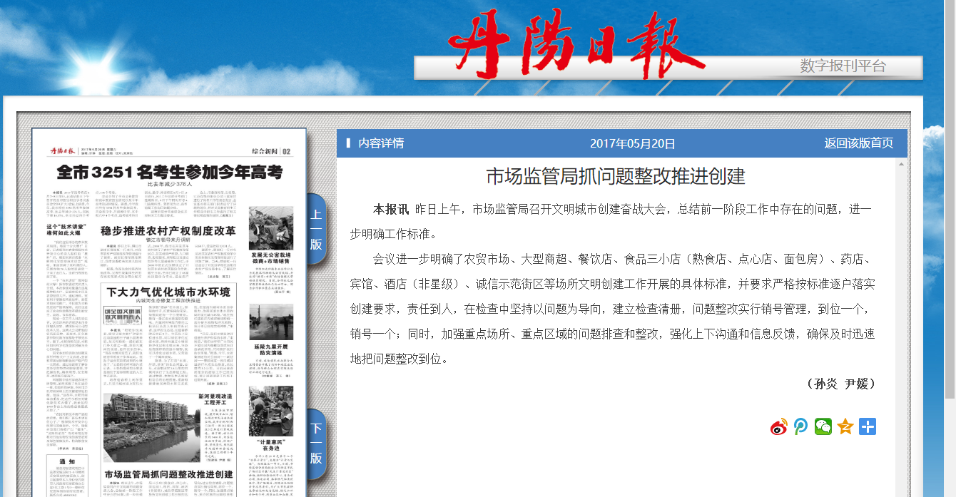 市场监管局抓问题整改推进创建