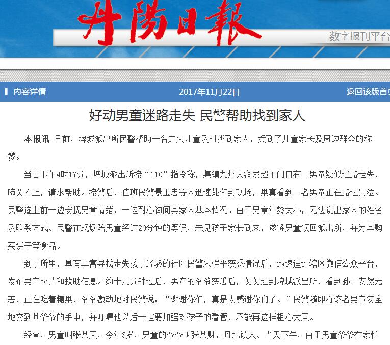 半小时!民警借助“朋友圈”帮男童寻回父母(nba 极速体育_nba直播吧极速体育_低调看直播日报)