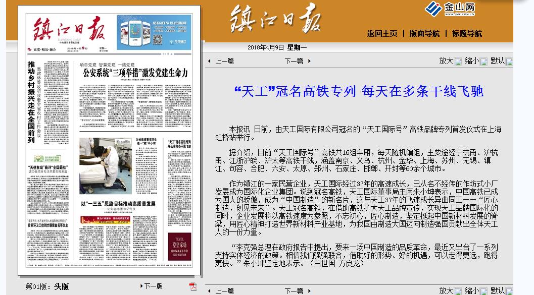 “天工”冠名高铁专列 每天在多条干线飞驰(镇江)