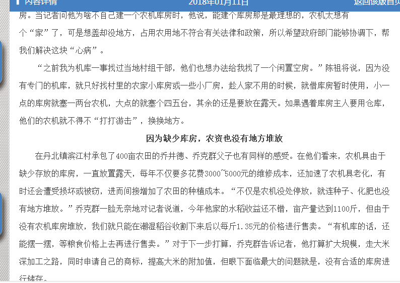 丹北种田大户期盼农机有个“家”