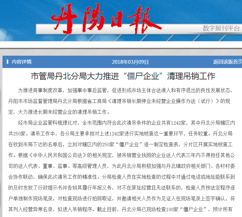 市管局丹北分局大力推进“僵尸企业”清理吊销工作