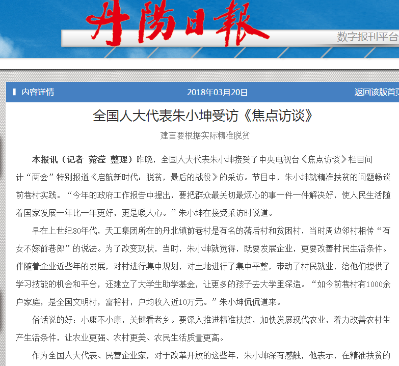 全国人大代表朱小坤受访《焦点访谈》