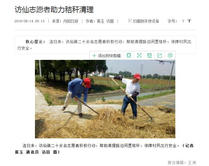 访仙志愿者助力秸秆清理