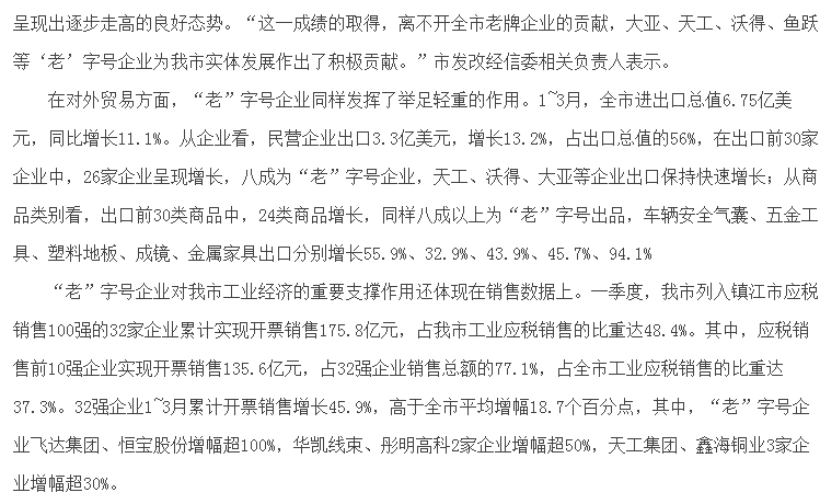 “老”字号企业“挑大梁”稳增长