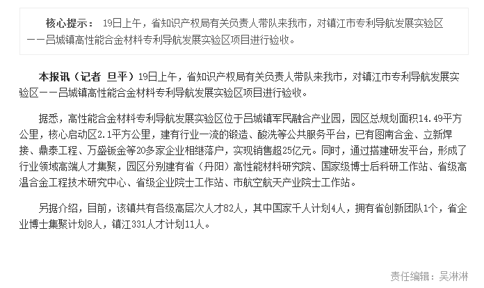 吕城高性能合金材料专利导航发展实验区项目接受验收