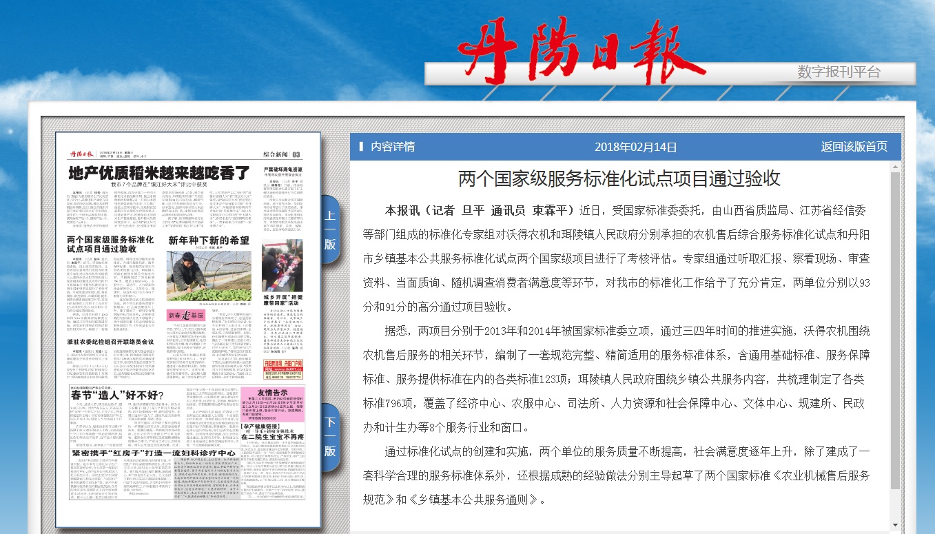 两个国家级服务标准化试点项目通过验收