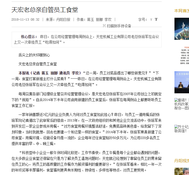 天宏老总亲自管员工食堂