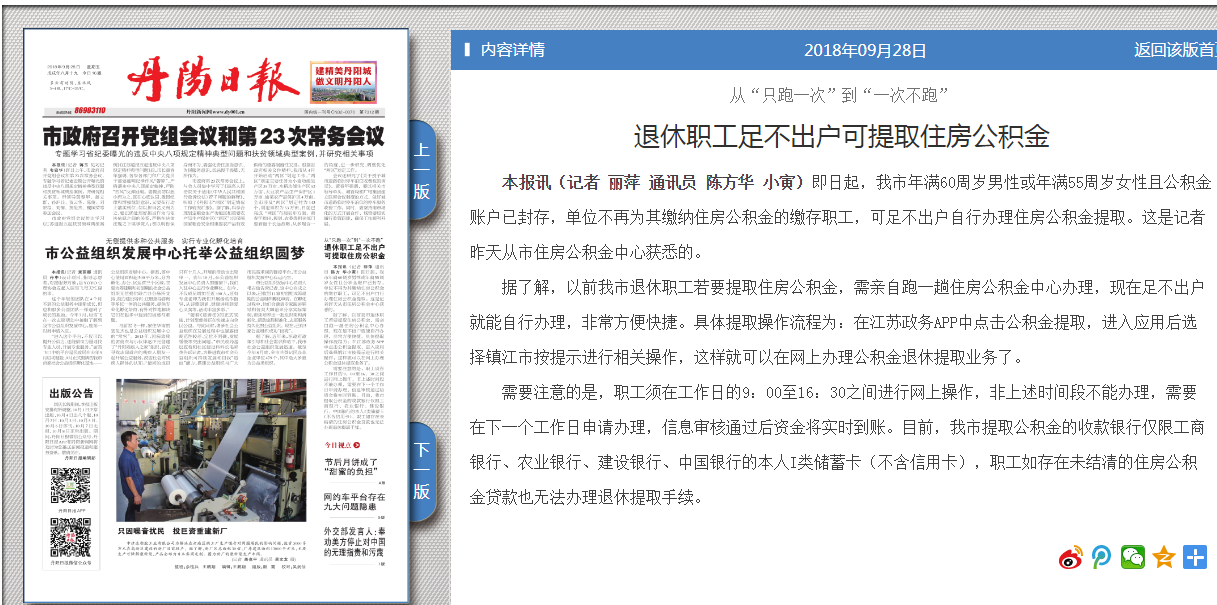 退休职工足不出户可提取住房公积金