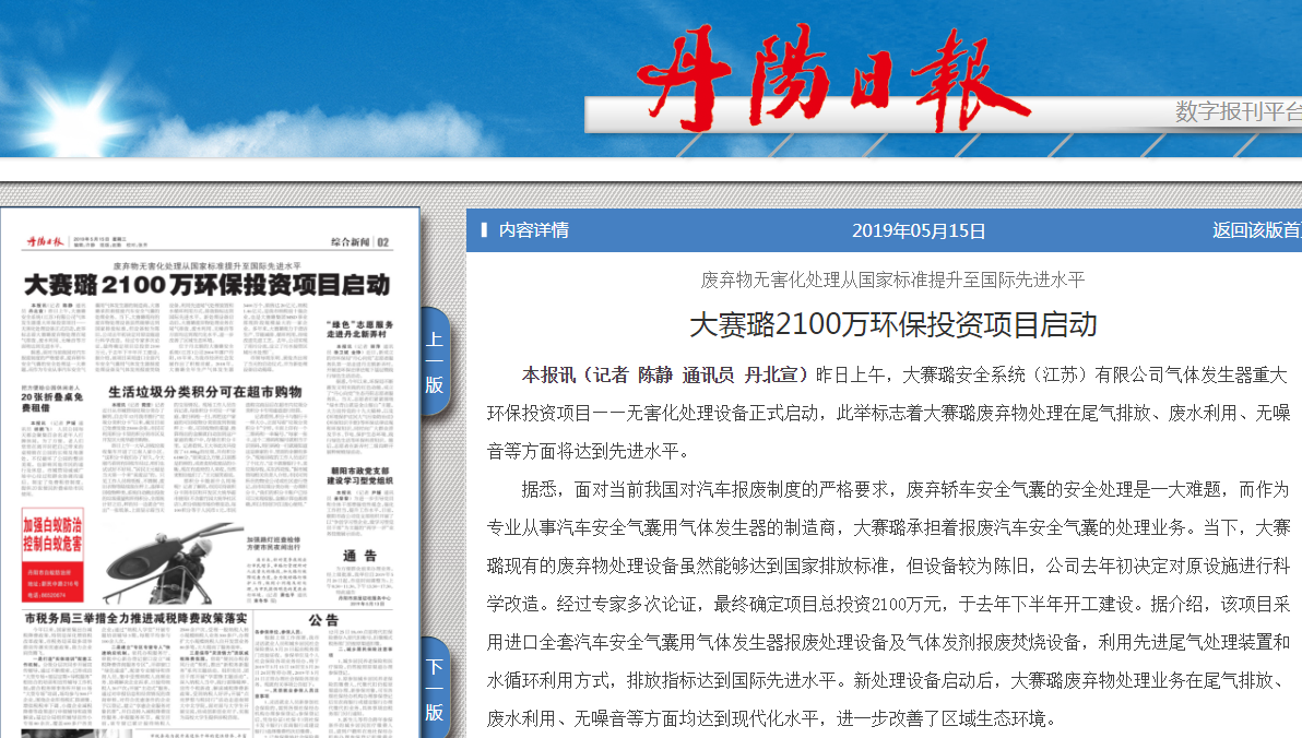 大赛璐2100万环保投资项目启动