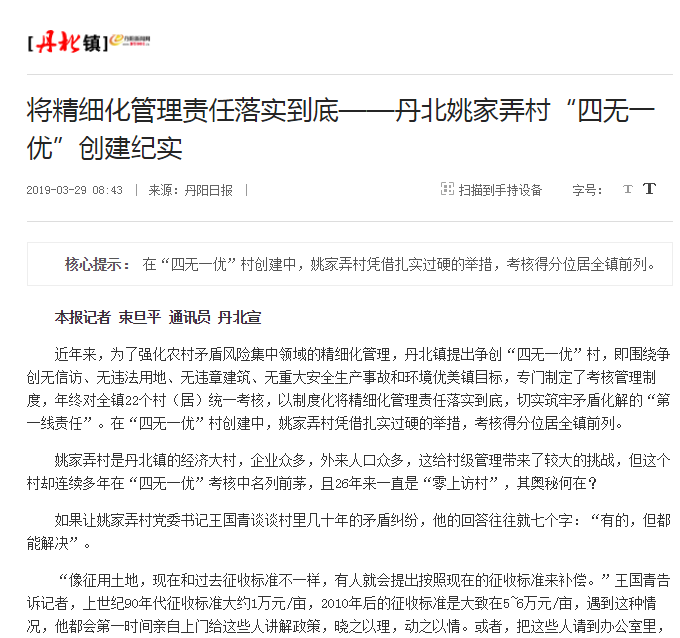 将精细化管理责任落实到底——丹北姚家弄村“四无一优”创建纪实