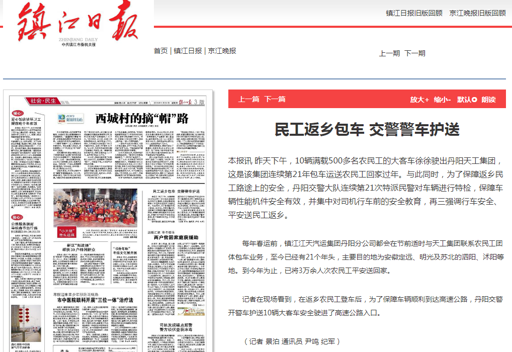 民工返乡包车 交警警车护送(镇江日报)