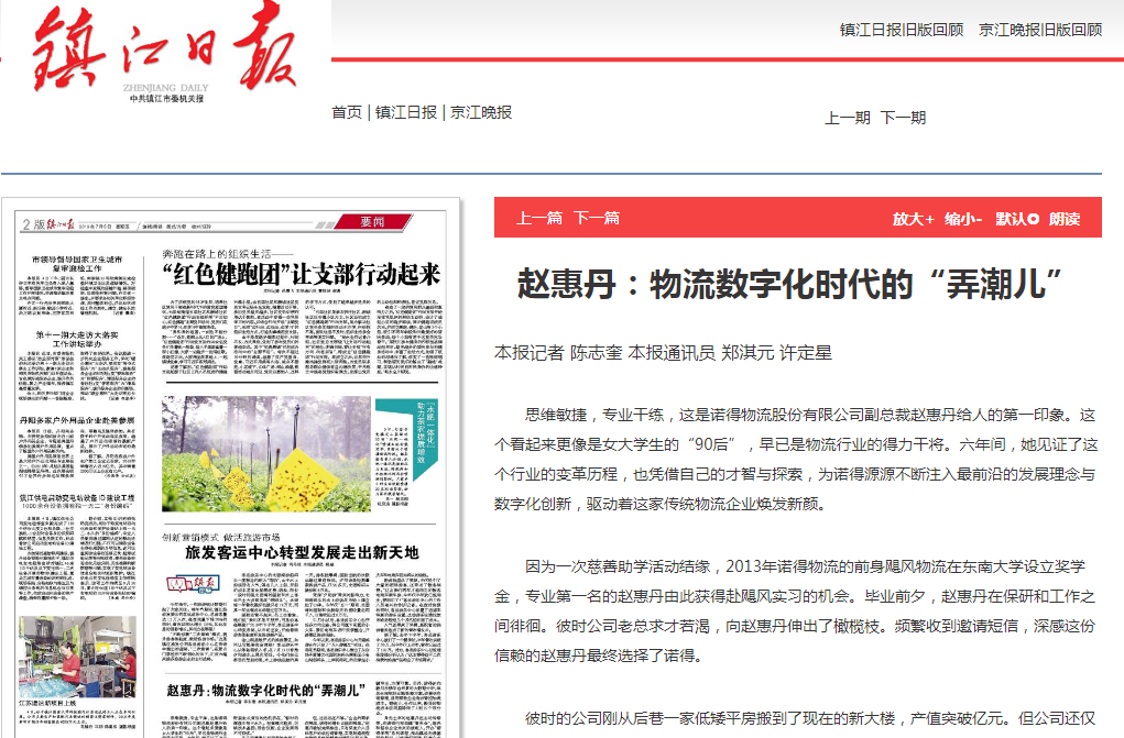 赵惠丹:物流数字化时代的“弄潮儿”(镇江日报)