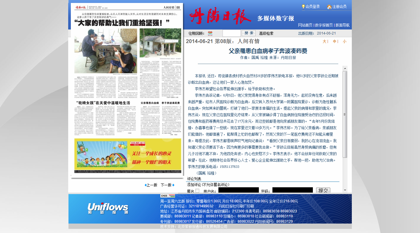 父亲罹患白血病孝子奔波凑药费