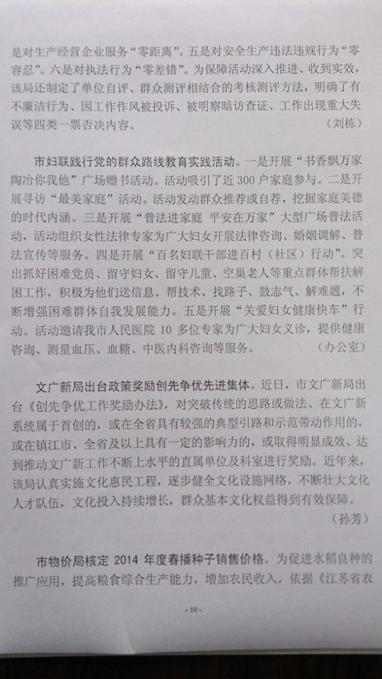 级用稿20篇的新闻宣传任务,并积极向《镇江日报》、《新华日报》、《人民日报》、新华社等重要媒体积极投稿,提高本部门的知名度与美誉度。