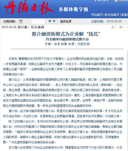 推介融资新模式为企业解“钱荒”(丹北)