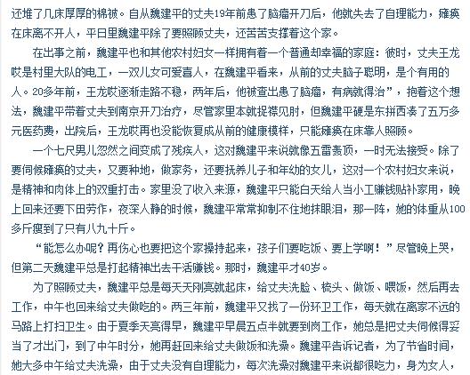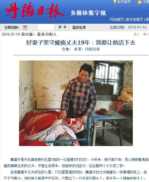 好妻子坚守瘫痪丈夫19年:我要让他活下去(丹北)