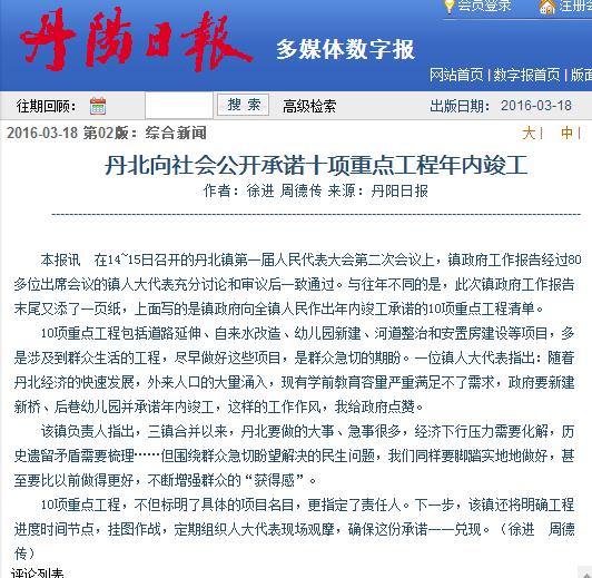 丹北向社会公开承诺十项重点工程年内竣工