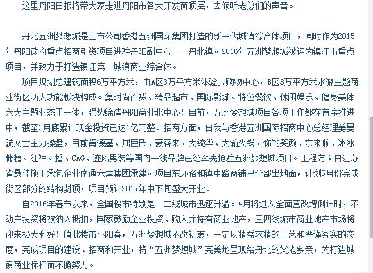 五洲梦想城 做城镇商业综合体标杆(丹北)