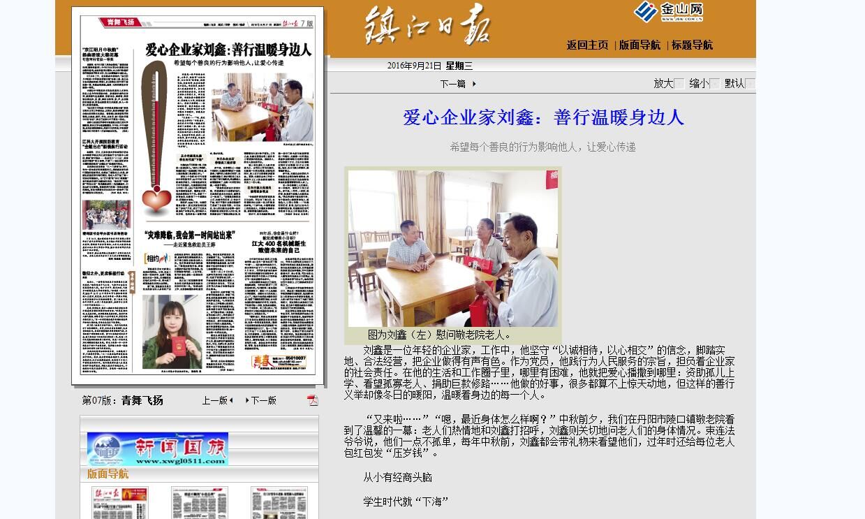 爱心企业家刘鑫:善行温暖身边人(镇江日报)