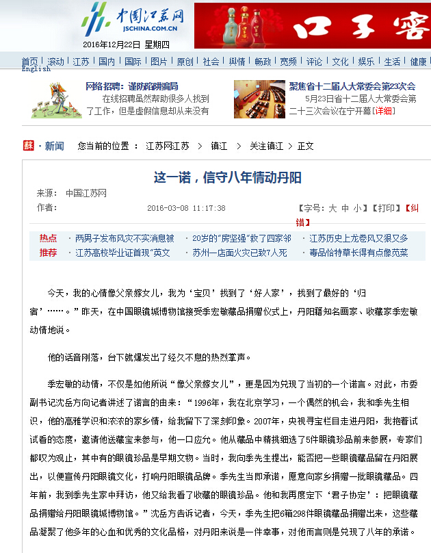 下一篇:中国眼镜博物馆接受nba 极速体育_nba直播吧极速体育_低调看直播籍画家季宏敏藏品捐赠(中国江苏网)