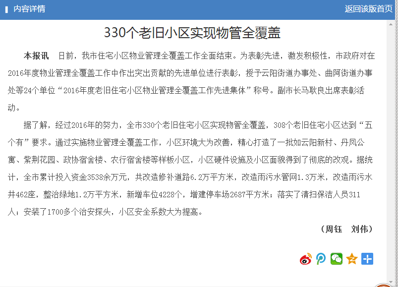 330个老小区实现物管全覆盖