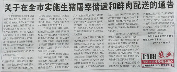 关于在全市实施生猪屠宰储运和鲜肉配送的通告