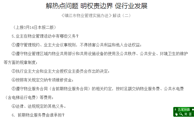 解热点问题 明权责边界 促行业发展 《镇江市物业管理实施办法》解读(五)