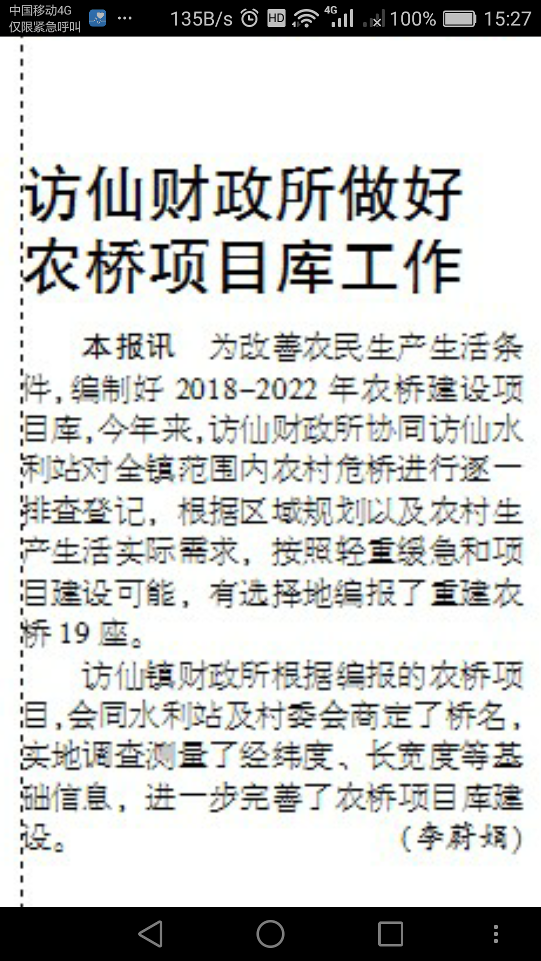 【镇江日报】访仙财政所做好农桥项目工作