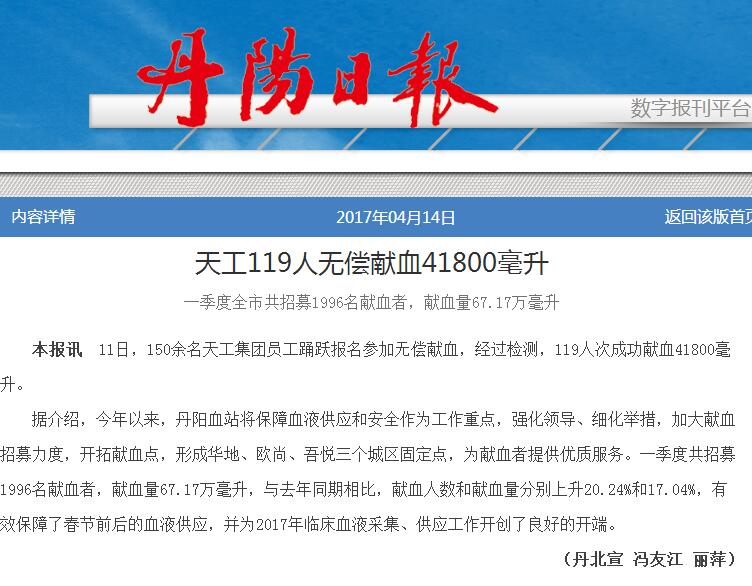天工119人无偿献血41800毫升