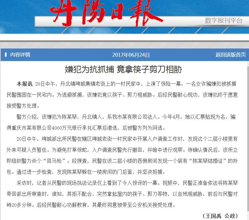 嫌犯为抗抓捕 竟拿筷子剪刀相胁