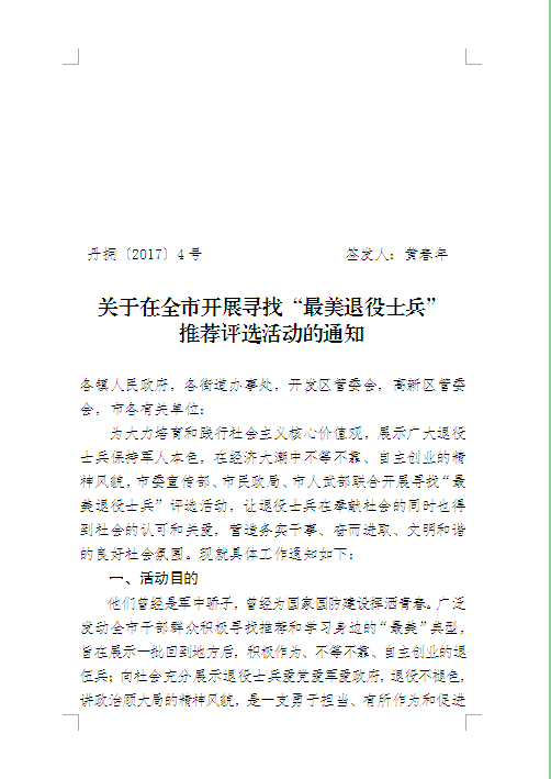 关于在全市开展寻找“最美退役士兵” 推荐评选活动的通知