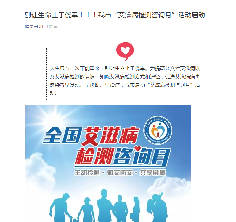 别让生命止于侥幸!!!我市“艾滋病检测咨询月”活动启动