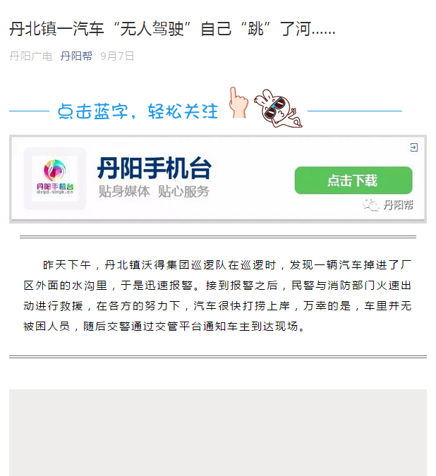 丹北镇一汽车“无人驾驶”自己“跳”了河......