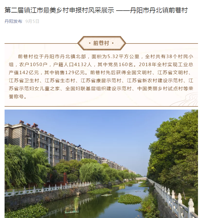 第二届镇江市最美乡村申报村风采展示 ——nba 极速体育_nba直播吧极速体育_低调看直播市丹北镇前巷村