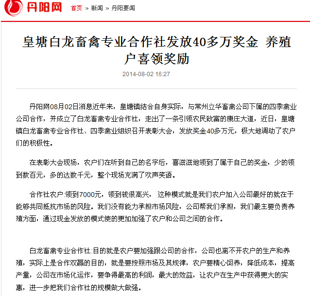 皇塘白龙畜禽专业合作社发放40多万奖金 养殖户喜领奖励