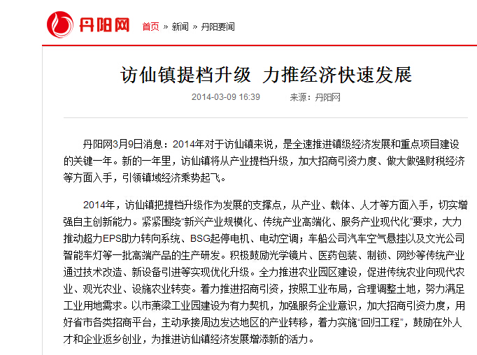 访仙镇提档升级 力推经济快速发展