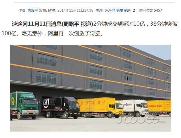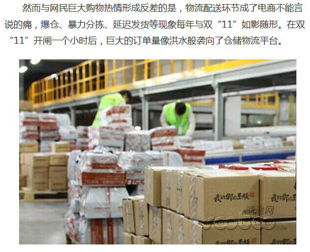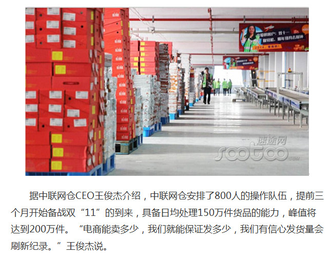 电商双十一物流大战开启 中联网仓欲拔头筹(环球网)