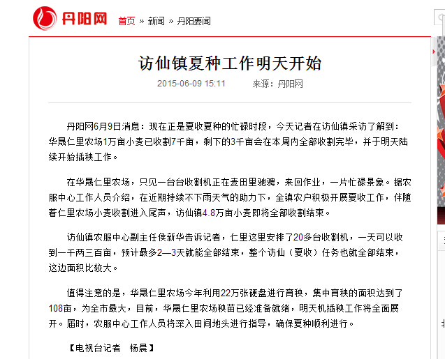新闻稿——访仙镇夏种工作明天开始
