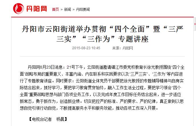 云阳街道举办贯彻“四个全面”暨“三严三实”“三作为”专题讲座