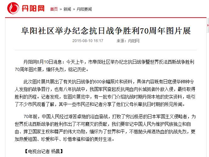 阜阳社区举办纪念抗日战争胜利70周年图片展