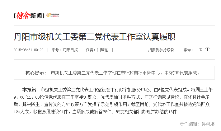 机关工委第二党代表工作室认真履职
