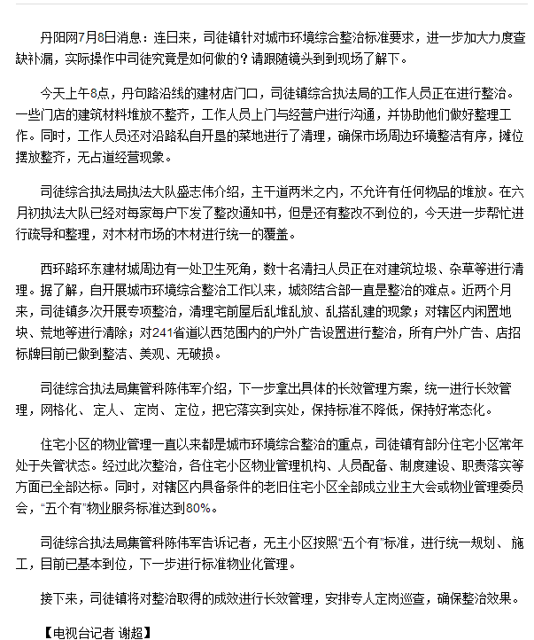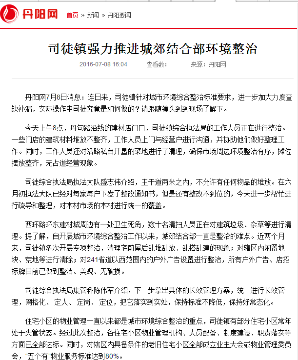 司徒镇强力推进城郊结合部环境整治